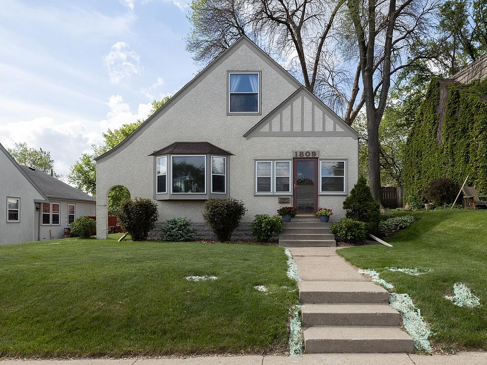 Walk to Lake Nokomis form this Wonderful Tudor Style Home, fully updated and ready for you! Lovely landscaped yard and charming front porch provides the initial welcome. Large Living Room with refinished hardwood floors and beautiful Bay Window! Adjacent dining space includes hardwood flooring and large side windows. All new Kitchen includes Cabinetry, Quartz C.top, SS appliances, C,tile backsplash, plus under cabinet lighting! Two bedrooms on main level and renovated 3/4 bath! Owner's suite on Upper Level with full bath and lots of closet space! Perfect little home office nook on the upper level too! Fully finished lower level has family room, play area, space for a home gym or game table plus bar area and 3/4 bath. Newer composite deck, gorgeous perennial gardens, large parking pad and newer 30x22 garage! All new windows, updated baths, newer sewer lines, updated stucco! This home has been meticulously maintained for decades! See it soon!