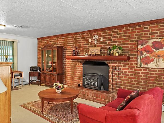 with fireplace, open kitchen with large dining and family entertainment area, 4 bedrooms 2 full baths, a fourth room that could be a bedroom or office, large sunroom that overlooks the rear yard, front attached carport with workshop. Hardwood floors and heart pine paneling.