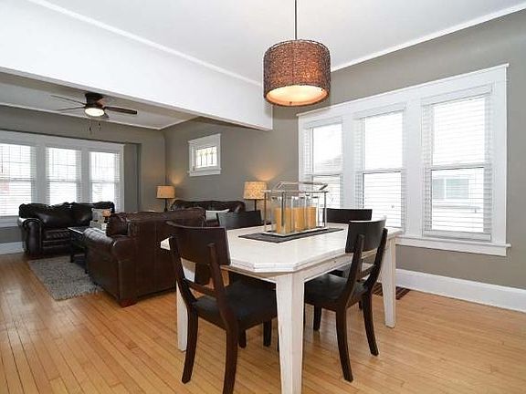 Charming Bungalow on a great block! Gleaming wood floors throughout main level. Kitchen remodel boasts cool, concrete counters, sleek white cabinets & stainless appliances. Dining room with built-in buffet. Two bedrooms & full bath on main level. Vaulted master suite upstairs with den or family room. Outdoor oasis features a completely fenced yard with stone patio and custom built, natural gas fire pit. 2 car garage is a rare find! All that's left to do is move in!