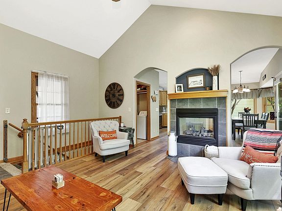 Welcome to this immaculate, move-in ready 4 BR, 3 BA ranch, nestled in a peaceful and serene area that feels like the country, yet is just minutes from everything you need. Located in a park-like neighborhood with convenient highway access, you can easily get anywhere in town, making this home the perfect blend of tranquility and accessibility. Step inside to find a home that has been immaculately maintained and tastefully updated with luxury vinyl plank flooring, elegant quartz countertops, and newer appliances. The open-concept design is complemented by newer carpet, fresh paint, nice millwork, and beautiful archways. A two-way fireplace creates a cozy atmosphere, perfect for relaxing or entertaining. The main floor also features a practical laundry area and the convenience of a central vacuum system, adding extra ease to everyday living. Entertaining is easy in the view out basement complete with a rec/family room with a second fireplace, two bedrooms, one bathroom, and storage. With plenty of room for a home office, the basement offers endless possibilities. Outside, you’ll appreciate the high-impact roof, gutter guards, and sprinkler system that keeps the yard looking lush and well-maintained. The covered deck offers a peaceful retreat, perfect for enjoying the serene surroundings, while the fenced yard provides security. An expensive update with two new Renewal by Anderson bedroom windows ensures energy efficiency and added value. This home is truly a TEN— quality built, immaculately maintained, and tastefully updated, in a location that offers the best of both worlds: a peaceful country feel just minutes from all the amenities you need. Don’t miss out on this incredible opportunity!