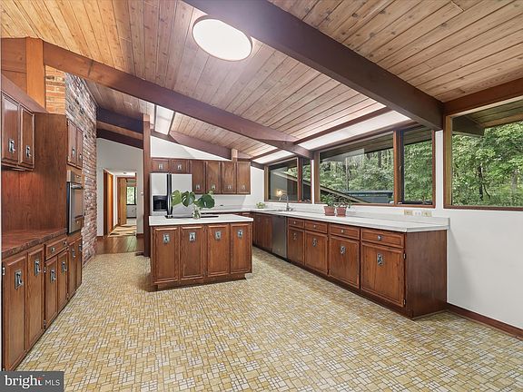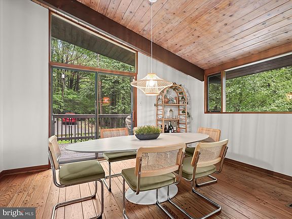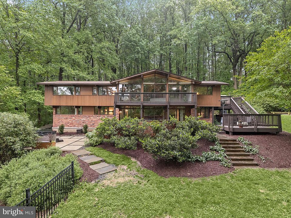 Mid Century Lovers - This private retreat is a nature lovers paradise nestled between DC, and Baltimore, but only minutes to the conveniences of Olney and Maple Lawn. Pulling onto your private driveway you will pass a picturesque pond and cross a beautiful creek that flows to the Middle Patuxent River. This 6-bedroom, 2.5 bathroom sits on 2.47 acres and features expansive views, wood ceilings throughout, original Deck House charm, indoor and outdoor entertaining spaces, and a beautiful original garden fountain. Recent updates to the home include gas fireplaces, new high efficiency HVAC with underground propane tank installation, French drain system, hot tub/spa and patio, window treatments, separate stand-alone heating and cooling system for the primary bedroom, invisible fence for pets, 200sq ft shed with kayak and paddleboard storage. Internet systems were also upgraded to provide fast stable and reliable internet access for remote and teleworkers. Enter through the signature waffle door to the light filled oversized living room with high vaulted ceilings, and a dining area surrounded by picture windows. You’ll love preparing your favorite meals in the chef’s kitchen that highlights the original wood cabinets, a large cooking island and a breakfast room offering side access to the deck. The expansive primary bedroom suite includes a sitting room, walk-in closet, and ensuite bathroom complete with a sunken tub underneath a skylight. And there’s a second bedroom or flex room and half bath. The lower level includes 4 bedrooms, a full bathroom, a large storage room with a workshop area, and family room with a brick fireplace and access to the spa like patio complete with waterfalls and a hot tub. Your new home will be visited by birds galore as well as deer, turkeys, foxes, and even otters. A private hiking trail runs behind the house, taking you all the way to Rocky Gorge Reservoir. Water access and a boat ramp for Rock Gorge Reservoir are only a short 4 minute drive away. Don't miss out on this unique opportunity to own your own piece of paradise.