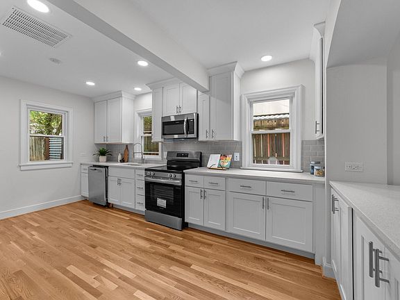 Welcome to this beautifully renovated 3-bedroom, 2-bathroom gem located in the heart of the highly desirable Duke Park neighborhood! Just a short stroll to the park, this home seamlessly blends modern updates with timeless mid-century character. Step inside to newly finished hardwood floors that flow throughout the light-filled living area. The thoughtfully designed floor plan includes a convenient downstairs bedroom, a spacious sunroom, and a cozy screened-in porch—perfect for relaxing year-round. The brand-new kitchen is a showstopper, featuring modern cabinetry, updated appliances, and stylish fixtures. Both bathrooms have been updated as well as fresh paint throughout and new fixtures. Enjoy the outdoors on your newly tiled private patio, or retreat to the detached, climate-controlled office space—ideal for remote work, creative pursuits, or a peaceful hideaway. Major systems including the roof, HVAC, and tankless water heater are all under 5 years old, providing peace of mind for years to come. Renovations were completed by a licensed contractor with attention to every detail. This home offers the perfect combination of location, charm, and modern convenience—don't miss your chance to make it yours! Detached office space isn't included in square footage.