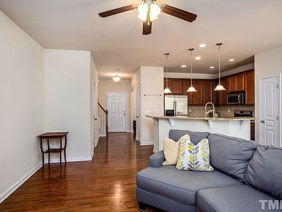 Enjoy the conveniences of townhome living and easy access to RTP, restaurants and shopping. Gleaming hardwoods throughout first floor. Ffront formal dining room or light filled office space. Main living area with open layout made to entertain! Granite counters and tile backslash shine against the SS appliances and gas range. Living room features gas fireplace and access to private patio with storage. Master suite has vaulted ceiling, walk-in closet, and garden tub. 2 additional bedrooms and full bath.
