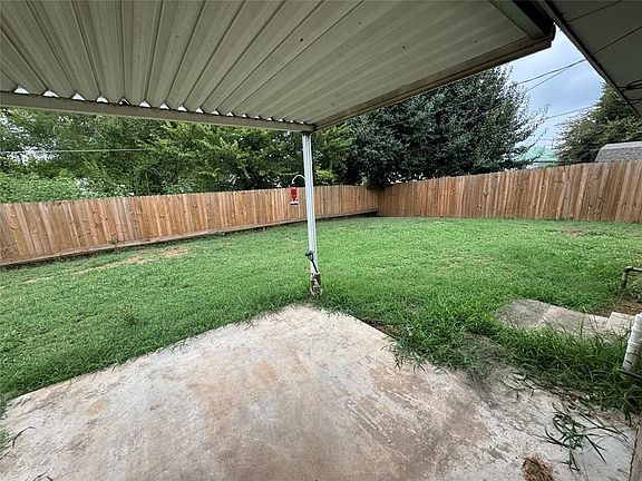 Privacy fenceBrick homeGood size backyardGalley kitchenAttic space in garageVinyl flooringDining area