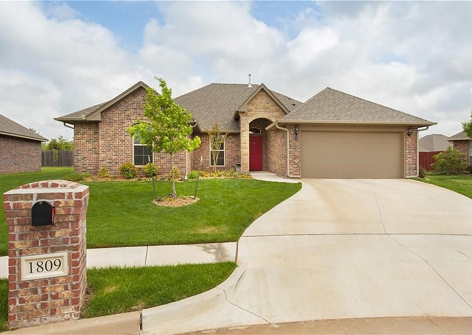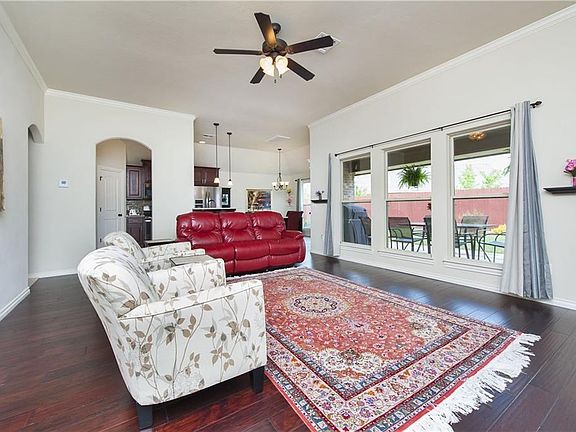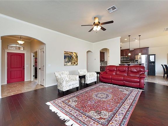 Some people say "Better than new" but here it fits to a T. With the abundant plantings, window coverings, STORM SHELTER, and appliances that have been added here you can move right into a perfect home. Appliances that remain are: Stainless steel fridge, washer and dryer. Gladiator cabinets in the garage and a darling extra attached cabinet by the dining area also add to the value. The house boasts 3 bedrooms PLUS a study with a closet. Master looks out onto the large yard with trees and flowers. Lovely wood floors in the family room which also has builtin shelving added and an elegant tumbled marble tile surround on the fireplace.