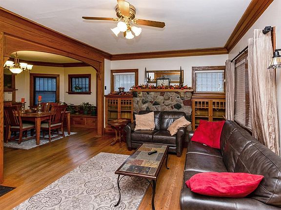 Charming classic Arts and Crafts style home with original woodwork and many updates: new bath, complete shingle tear off & replacement with 35 year shingles 2018, water heater 2018, furnace 2016, 7 windows replaced 2016, privacy fence just stained. Granite stone fireplace is non-operational. Surprisingly spacious. Large front porch welcomes you. Additional parking space next to the garage in the alley. One year HSA buyer warranty. Delightful family home close to shopping, downtown, and schools.