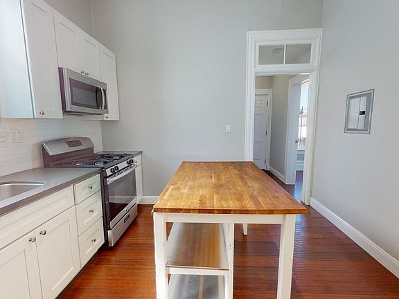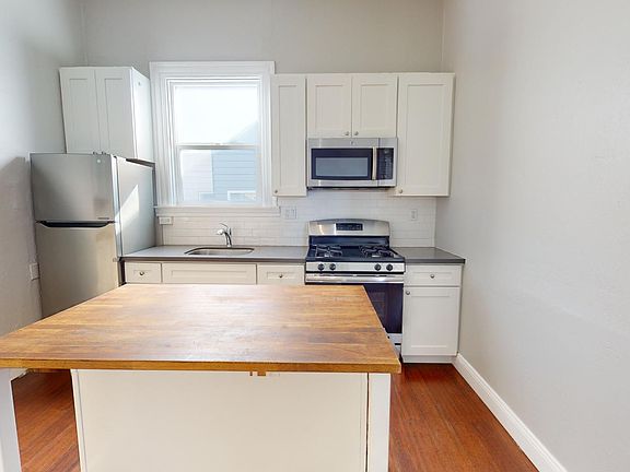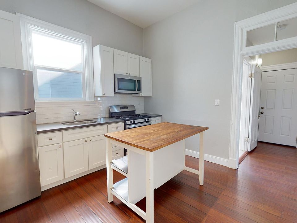 About The Unit: Top Floor back corner Jr. 1x1 unit features fully modernized kitchen with stainless steel microwave, full sized refrigerator, dishwasher, gas range, white cabinets with matching subway tiles. Freshly painted, with refinished hardwood floors and modern track lighting throughout, the unit also contains 9ft ceiling, double pane windows, and a sleek modern bathroom with white marble tile and in-unit washer and dryer. About the location: Situated in the historic Ralph Bunche neighborhood, the building is located just two blocks from the West Oakland public library and the historic de Fremery Park, which sits on 9.5 acres of land and contains tennis courts, basketball courts as well as a softball field, and known to host many local events. The unit is just 1 mile from either the West Oakland BART or the 19th Street station, and half mile away from freeway access. Uptown Oakland with all the new restaurants, breweries, bars, and Fox theatre is just a mile away, and Emeryville is within a 10 minute drive. The location is ideal for the daily commuter looking to live in style. Walk Score: 85 Bike Score: 87 Rent - $1695 Deposit - $1000 Utilities: Water / Gas / Electric (flat fee) Pets: Cat & Dog Friendly Credit Score - 650+ (guarantors welcome) Income - $5000 minimum gross household income No Smoking Allowed Street Parking Only