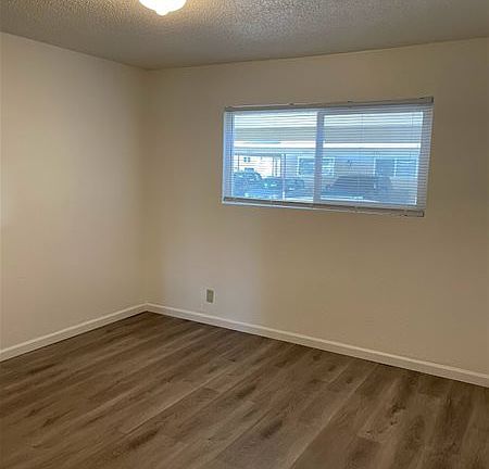 2 bedroom 1 bath apartment home with approximately 580 SQFT. Kitchen with tile counter tops, refrigerator and electric range. Spacious bedrooms. Bathroom with a shower tub combo. Laminate flooring throughout! Laundry facilties on-site. 1 car covered carport. Water, Garbage and Sewer paid by owner.