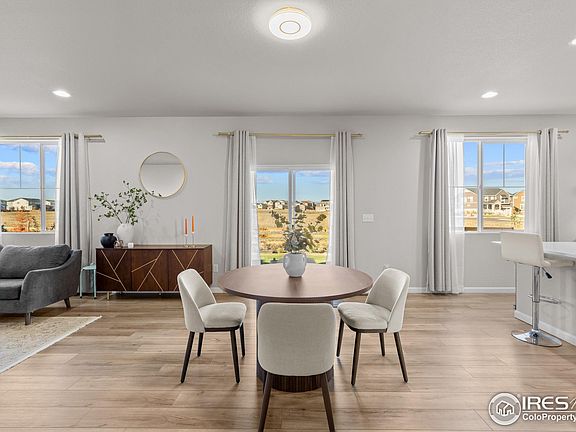 At 1809 Meagan Way, everyday comfort meets trail access mountain views, and open space right in your backyard. Built in 2022, this 4,446 square foot home offers 2,914 finished square feet designed around flexible living. The kitchen, dining, and living areas flow together easily, while a main-level bedroom with a private ensuite bath creates a convenient option for long-term guests or anyone who prefers a room on the main floor. A dedicated home office sits at the front of the home, and an additional flex room adapts as a second office, dining room, or quiet den. Upstairs, a spacious loft adds another relaxed gathering space. Two secondary bedrooms share a full bath with dual sinks, and the nearby laundry room helps streamline daily routines. The unfinished basement expands the possibilities, offering room for storage, future finishing, or hobby space. Step outside to a backyard designed for outdoor living. A large, covered patio looks onto open space and mountain views, and the yard includes fruit trees, garden beds, and established plantings. A natural gas hookup is ready for grilling or a future outdoor kitchen. Morgan Hill offers a welcoming environment with two neighborhood parks, a community pool, upcoming Town of Erie Park access, and miles of walking paths. The neighborhood trail behind the home provides a scenic stroll to the future park and a direct route into Downtown Erie, which sits just 1 mile away. Everyday essentials are also within easy reach, including the Erie Community Center 2 miles away, Erie Elementary and Erie Middle School both 1 mile away, and Erie High School 2 miles away.