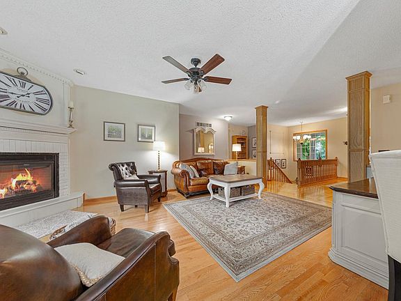 professionally landscaped yard including forsythia, lilac, roses, and wisteria. Gardeners will love the vegetable and pollinator garden, a potting shed, and irrigation system. This sprawling rambler-style home has an open floor plan with refinished hardwood floors and