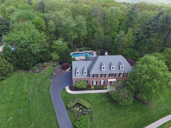 Are you feeling a bit cramped in your current living quarters? Try this beautiful home on for size! Located in the lovely Weatherlea community of just sixty some homes, this beautiful center hall colonial ranks fifth in building square feet. The unique topography of the area allowed the builder to carve out a secluded oasis on this acre and a quarter lot. At the end of a hard day, you'll find a smile emerging on your lips as you pull up to your new home and take in the curb appeal. A rich brick facade, rooftop dormers, Palladian windows, columned entry.... elegance abounds. The two story foyer, with turned staircase, offers sight lines that hint at this homes amazing flow and light. A formal living room and huge dining room flank the center hall. Your first taste of the great room fireplace wall is also in view. The kitchen with cream cabinetry and stainless appliances, flows seamlessly into the breakfast room and great room with vaulted ceilings. A den provides a setting for some quiet conversation, reading a good novel or a home office. Newly refinished hardwood floors run throughout the main level. If you enjoy entertaining, you need to add this home to your tour agenda. Host holiday occasions that will easily accommodate a large crowd, or a summer party, where this home will really shine! Step out the back door to your own piece of heaven. A sunny patio and free-form pool are carved into a horseshoe of tall trees and thick woods. Water cascades from the raised hot tub into the pool below. Enjoy a warm soak, a refreshing dip or keep your feet dry and enjoy a wander along the serenity path through the woods. The landscape design offers incredible privacy and beauty. The newly carpeted second floor will not disappoint. The master suite features tray ceiling, dual walk-in closets, a large sitting area and a spacious ensuite bath. A second bedroom has its own bathroom. Two more bedrooms share a hall bath. Fresh paint and neutral colors should mesh well with any decorating style. Three car garage and basement with Bilco doors make storage a breeze. Morgan Lane is a horseshoe road with almost no through traffic along this stretch. Spring-Ford schools. Easy access to Providence Town Center with Wegman's, the Movie Tavern and a broad array of shopping destinations. Easy access to US-422. Give this one a look!