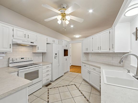 This beautifully designed 4 Bedroom + Office, 3 Bath home seamlessly blends comfort and style. The spacious living room features hardwood floors, gas fireplace, and a dining area. The light and bright, fully applianced kitchen offers a breakfast nook, abundant countertop space, and ample cabinets — a perfect setting for cooking. Main floor living areas feature 9 ft ceilings. The master bedroom is a true retreat, boasting direct access to the outdoor patio and pool area, a large walk-in closet, and en-suite with dual sinks. Downstairs, the basement adds incredible flexibility with a cozy rec room featuring a fireplace, a finished bedroom, and a large office with a storage room that can easily be converted into another walk-in closet. Huge storage space with apx 400 sq ft of unfinished space in the basement. Convenience abounds with main floor laundry, while the fenced outdoor space is an entertainer’s dream. Relax and unwind by the 20x40 in-ground pool, designed for both leisure and gatherings. Located in Maize School District this is move-in ready with new siding in 2011 & Home Warranty Offered to the New Buyer.