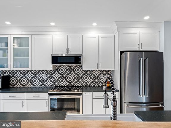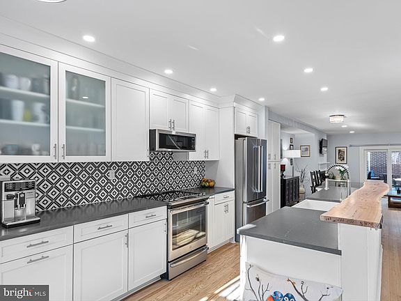 Welcome to your home in the Triangle Neighborhood, a quiet retreat near downtown Wilmington! This home sits 1/2 block from Brandywine Park and Zoo with quick access to coffee shops/restaurants, the park and greenway trail system. Inside, recessed lighting and hardwood flooring throughout the home gives it an airy feeling. The recently remodeled modern kitchen is complete with soapstone countertops, an oversized farmhouse sink and custom cabinetry with rollout shelving to maximize storage. Two large pantries provide abundant storage. Check out the live edge wood feature sure to get some compliments. Your living room features built in shelving and a wood burning fireplace with sliding patio doors to the new outdoor paver patio. This connects to the large detached one car garage. On the second level, the primary bedroom has two large closets with Elfa shelving system to keep you organized. The ensuite bathroom has a stunning marble shower featuring Kohler shower head and body spray tiles to wipe away the day’s stress. Smart in-wall cabinetry adds to the storage options. There is a second bedroom on this floor with closet space. You will find your soaking tub in the second fully remodeled bathroom on this floor. Same floor laundry room keeps you from going up and down the steps and is complete with front loading washer and dryer and storage shelving. Now up to the third level that showcases your large bonus space. This could be a third bedroom, exercise room, office or entertainment center! Plenty of additional space in the large unfinished basement. All duct work has been recently aero-sealed with new HVAC installed in 2023. Come check out this great city property!