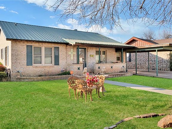 Immaculate 3 bed/2 bath brick home. 2 Living areas plus a sitting area. The kitchen features granite countertops, high end JennAir appliances, hammered copper farm sink and a large window above the sink to view the beautifully landscaped back yard. The refrigerator, gas stove/oven, and dishwasher have an oiled-bronzed finish to match the countertops. The large family room features a wood burning fireplace with brick hearth the width of the room. The family room, kitchen, dining room and sun room are open concept. There is also a formal living room and a separate sitting room. The backyard is beautifully landscaped and has a partially enclosed patio perfect for entertaining. In-ground storm shelter. Additional parking in the back with oversized carport for parking a travel trailer. Metal roof. An absolute must see!!!