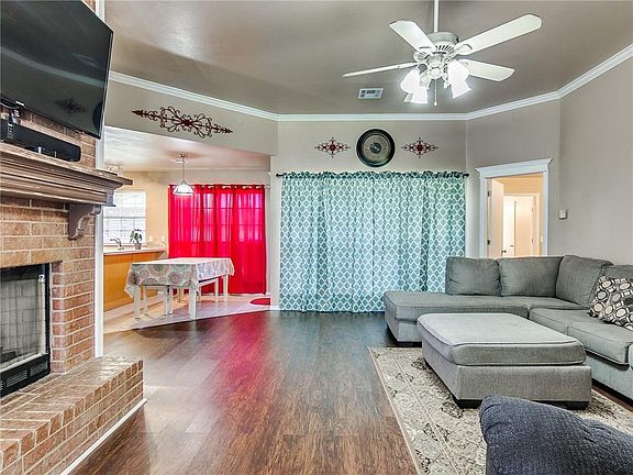 Come check out this adorable, move in ready home. Offering 3 bed, 2 bath and 2 car garage with a storm shelter! Fresh paint throughout, new carpet in all the bedrooms, and brand new appliances last week!! The living room is complete with beautiful faux wood floors, extra high ceilings and a cozy bricked fireplace. In the dining room and kitchen, you will find tiled floors, matching black and stainless steel Whirpool appliances, and a bar top for the kids after school snacks. The master retreat is off the living room with access to your spacious master spa. Enjoy baths in your new jacuzzi tub! Double vanity for added space and a huge walk in closet! Two more bedrooms and a guest bath make this the perfect new home for any family. Located near Choctaw High School and Choctaw Creek Park, this home is a must see!