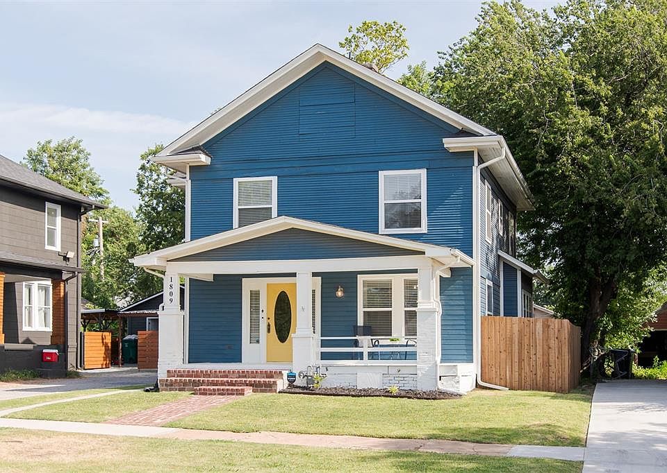 This bright and cheery American foursquare home in Classen-Ten-Penn was built in 1911, fully updated and is ready to be yours! Enjoy morning coffee and evening relaxation on the breezy front porch. The main floor has an open, easy flow through living, dining and kitchen and welcomes guests in through a classic entry. A charming fireplace occupies one wall in the living room where light pours in from south-facing windows. The spacious dining room is open to the living and features a built-in buffet framed by large windows. A stylish and well-appointed kitchen features matching stainless steel appliances, granite countertops and a farmhouse sink. Upstairs, the primary suite has a claw-foot tub and shower, double vanity sinks with tons of counter and cabinet space and a convenient walk-in closet. The two secondary bedrooms share a roomy hall bath with shower and tub. A beautiful powder bath adds convenience to the main floor. The fully fenced back yard is accessed through a generously sized laundry room and features a wide open lawn, mature trees, new privacy fence and carport. The home was fully restored in 2019/2020 including roof, hvac systems, most plumbing and electrical, kitchen, baths, laundry, etc. With all the updates you want, an ideal floorplan, incredible primary suite and just a short walk or bike ride from the Plaza District, Midtown and Uptown 23rd, you won't want to miss this opportunity.