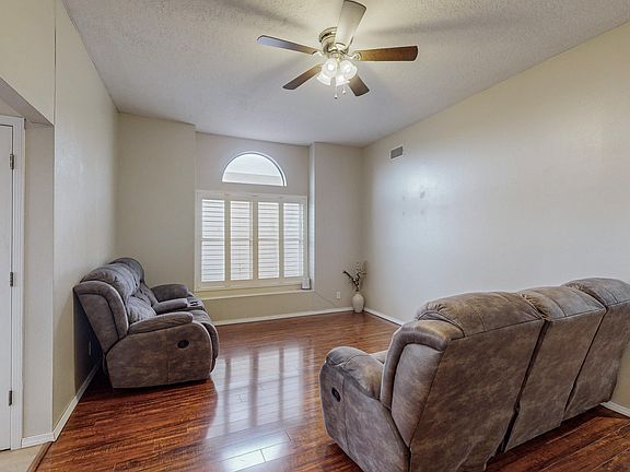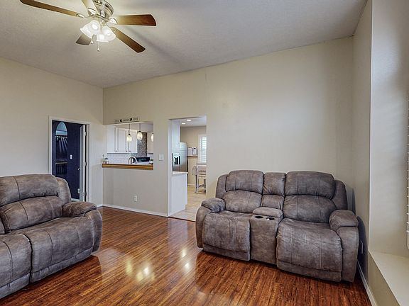 This home includes a large living area with high ceilings and lots of natural light. It has been well maintained and kept. There are multiple upgrades that have been done including flooring, paint and a new roof in 2020. Kitchen includes stainless steel refrigerator and dish washer. All bedrooms include ceiling fans and master has his and hers closets. It also includes seller owned solar saving you on electricity and backyard is accessible with no neighbors behind home. A great place to call home!
