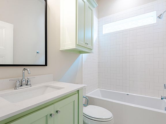 Graciously inviting each guest inside, this home's historically inspired exterior gives you a warm feeling of nostalgia. This charming home welcomes guests into the entry that flows into the oversized kitchen, dining room with accent wall and vaulted living room with a corner stone fireplace and large slider door to the patio to make entertaining a breeze! The home's primary suite features a 14ft ceiling, separate vanities, a spa glass shower, and a large walk-in closet. An adorable light green barn door leads you into the home's private office that has a craftsman built-in desk that spans the room. You will also find a guest bedroom and a full hall bath with a fun colored vanity! The home's oversized 2.5 car garage also features a walk-in above ground storm shelter. The Plaza at Town Square features lawn maintenance, a clubhouse, a resort-style pool, a fitness center, a youth rec center, a playground, a wooded green belt, and a pond with a fishing dock.