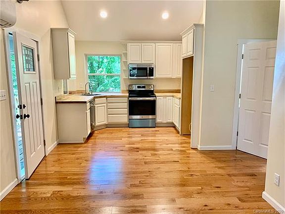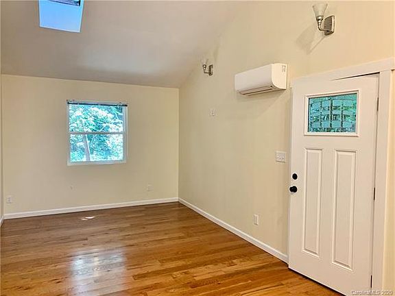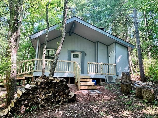 Newly renovated writer's retreat/cottage. Everything taken down to the studs and rebuilt. Includes new floor joists and hardwood flooring; new interior walls and skylights; all new electrical wiring and plumbing lines; kitchen totally remodeled, including new GE appliances with new kitchen cabinets and butcher-block counters. Bathroom completely redone with new fixtures. HVAC system has two new high efficiency wall-mounted units. Lot of .6 acres is nestled in the woods with plenty of room for expansion, garage, etc. Near Brevard Music Center and Bracken Mountain Reserve hiking trails, and yet only one mile to downtown Brevard.