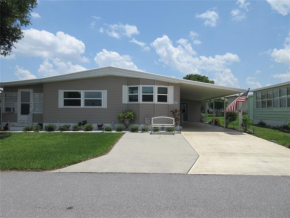Pride of ownership shows in this 2 bed 2 bath home located in the beautiful Foxwood Lake Estates Community. Owners are willing to leave many of current furnishings, what a bonus for new owners! Both bathrooms have been upgraded, newer flooring throughout. Kitchen area has newer appliances and plenty of storage. Separate dining off the kitchen for all of your family meals. The great room is perfect for gatherings and is open to the dining and kitchen. The Florida Room has it's own A/C window unit and new laminate flooring, a peaceful place to enjoy your morning coffee or read a book. In 2022, a new rolled aluminum roof was installed along with a vapor and installation barrier under the home. Windows in the main area of the home are only 3 years old. New gutters and downspouts for the exterior and you will enjoy having 2 driveway parking pads. Plenty of parking and a storage room on the carport to keep all the extras. Home is well maintained and sparkling clean throughout. In Foxwood Lake Estates, the owners own the lot and the home, no lot rent fees. The community is conveniently located near I-4 for an easy commute to Tampa or Orlando. Tons of amenities, some of which include: large clubhouse, fitness center, large pool, pickle ball court, shuffleboard courts, paved walking area around the lake and many opportunities to get involved with others. Don't miss out on owning a furnished home in this wonderful community!