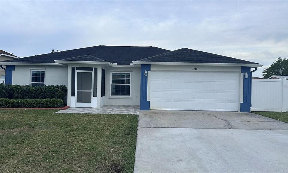A Beautiful & very Well Maintained Home! This Gem Features 3 Bedrooms, 2 Bath with 2-Car Garage, Screened Lanai on a Large Lot. No HOA or Fees. Open Floorplan with Vaulted Ceiling and New Vinyl Throughout,. Great Room Includes Kitchen, Living and Dining. The Kitchen updated in 2021 with stainless steel appliances and has grey Cabinets, with a beautiful cocking island. Large Sliding Glass Doors to the 10x25 Screened Lanai located on a big back yard "little farm back yard! Split Plan with Master Bedroom & En-Suite Bath Includes Walk-In Closet and Updated Tiled Walk-In Shower. 2 Add'1 Bedrooms and Full Bath. 2-Car Garage with Washer, Dryer and Door Opener.it also Features Screen Enclosed Front Porch Entry. kind a Brand New HVAC Systemin 2020, New flooring 2021, Metal Hurricane Shutters, Gutters & Pest Defence In-Wall System. brand new fence in 2021. This Home is Light & Bright and Ready for New Owners! Great Location with Nearby Shopping and Restaurants, The Loop, Florida's Turnpike and Easy Access to Theme Parks, Orlando Int'l Airport, Lake Nona Medical City & More