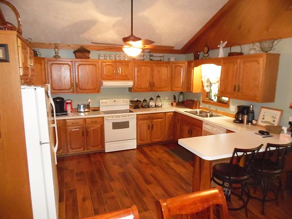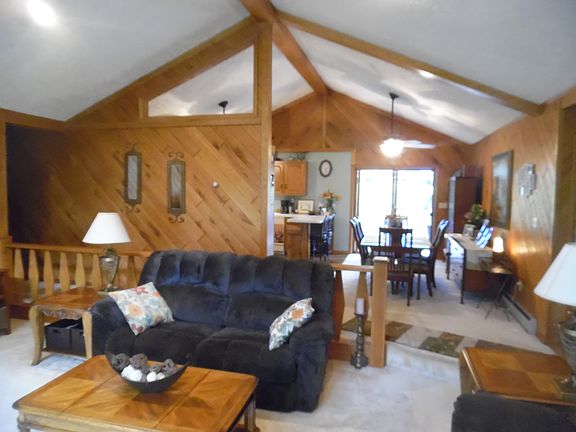 4 BR, 2 bath ranch home. Open floor plan with cathedral ceiling in the living room, dining room, & kitchen. Main level laundry & large master suite with 2 walk-in closets. Basement has plenty of storage, along with a large finished family/recreation room. 12x22' rear covered concrete porch. Updates include new flooring in the kitchen & baths, front & rear exterior doors, & bathtub in master bath. Full basement. Gas hot water baseboard heat