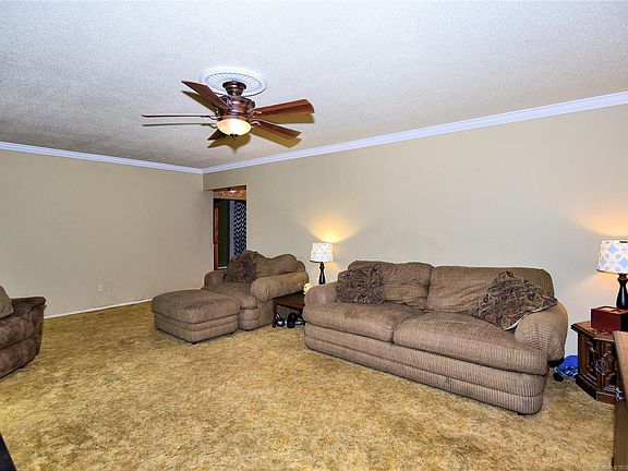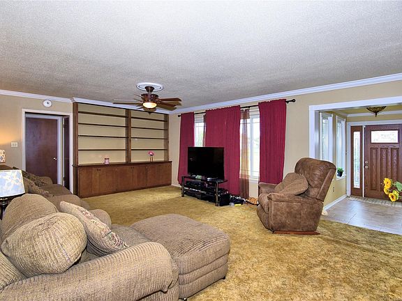 Sun porch, storm shelter, large kitchen & living room, 2 beds plus flex room, split bdrm plan. House on large fenced lot with covered patio. New carpet in living and hall, 3rd bdrm/flex rm w/closet accessed thru hall bath or bdrm. Chickens permitted.