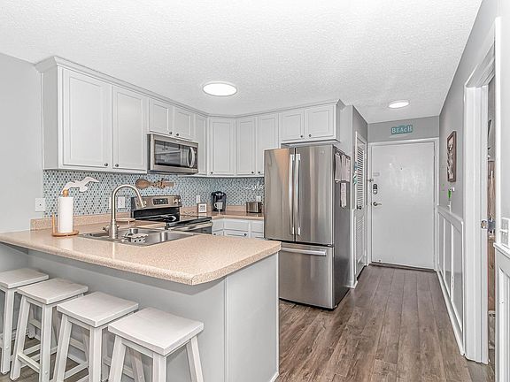 Experience the ultimate beach lifestyle at Ocean Garden Villas! Nestled along the serene coastline, this 2-bedroom, 2-bathroom condo beckons with its inviting charm and breathtaking views of the Atlantic Ocean from your very own patio. Conveniently situated on the first floor, it offers easy access and a seamless transition to beachside living. Step inside to discover luxury vinyl plank flooring that adds a touch of elegance to the space. The updated appliances in the kitchen make meal preparation a breeze, while the in-unit washer and dryer provide added convenience. No need to worry about storage for your beach gear—this condo comes with attached storage space to accommodate all your necessities. Whether you're looking for a permanent residence or a vacation retreat, this condo is fully furnished and move-in ready, allowing you to immediately immerse yourself in coastal bliss. Additionally, with bookings already secured, it presents a lucrative investment opportunity, enabling you to generate income from day one. Please note that measurements are approximate and should be independently verified by the buyer. Don't miss out on the chance to embrace the coastal lifestyle at Ocean Garden Villas—schedule a viewing today!
