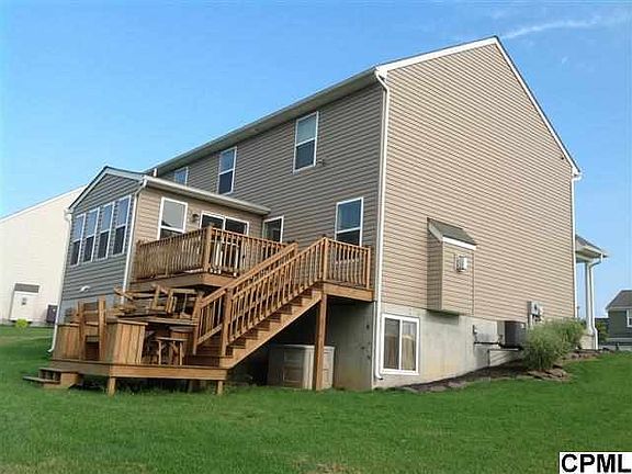 For more information, call or email Chuck at 717-413-8601 stickleriv@live.com Beautiful 4 bedroom, 3.5 bath home in the desirable neighborhood of Bow Creek. First floor features a spacious kitchen with island and a large dining area/sunroom with vaulted ceilings and surrounded by windows for a picturesque view, dining room, office, powder room and family room. Second floor has 4 bedrooms with a large master suite, soaking tub, and large walk-in closet. The private back yard features a tiered deck, with built in benches and planters abutting common area for a much larger feel without the extra mowing. The finished basement includes a large family room (24 x 15), an extra bedroom/office (12 x 12), exercise/storage room (10 x 15), full bath and a large window for natural light adding and extra 600 square feet of living space. Other amenities include a laundry room, ceiling fans in all bedrooms, gas heat, central air conditioning and biking/running trail that circles the neighborhood. 2 car garage with extra bump out and laundry sink. Minutes from Hershey, Med Center, restaurants and major highways. Great neighborhood full of kids, Lower Dauphin schools. Was promised great sunsets and it hasn’t disappointed.