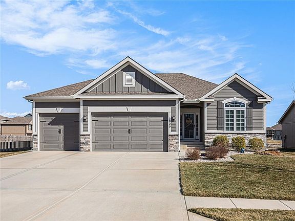 Better than new!! Don't miss your opportunity to tour this stunning 3 bed 2 bath spacious ranch with convenient access to Dogwood Elementary, I-35, Smithville Lake, and the airport. It's easy to enjoy the views from the Great Room which is loaded with natural light and features a handsome fireplace.  The open concept leads into the sparkling kitchen complete with lots of bright and white cabinets, herringbone backsplash, and sparkling Granite-- an entertainer's delight for hosting guests. The cozy breakfast nook provides private access to a covered patio overlooking the backyard.  Huge primary bedroom and a spa-like bath complete with double vanity, soaker tub, walk-in shower, and roomy walk-in closet. The main level is also home to 2 additional spacious bedrooms. An unfinished basement is ideal for additional storage or could easily be finished for additional living/entertaining space by the new owners. Buyer's agent to confirm lot size, square footage, school district, and tax information.