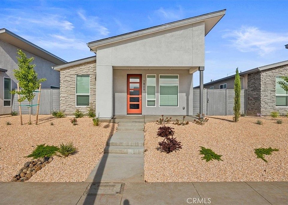 Experience stylish living with this 3-bedroom, 2-bath single-story home, built in 2023. Embrace the ease of modern living in 1,306 square feet of carefully designed space, featuring a west-facing orientation that welcomes natural light throughout the day. Nestled in the master planned community Meriam Park, this residence offers more than just a home – it’s a lifestyle. Enjoy the convenience of shops, restaurants, health and beauty services, a park with pickleball courts and a dog park, live music and events, boutique hotel, a collection of professional office and medical businesses, and a neighborhood market on the horizon … all within walking distance. Inside, discover a seamless blend of form and function. The open floor plan connects the kitchen, dining, and living rooms, creating a welcoming space filled with natural light. The kitchen boasts white quartz countertops, brand new full stainless steel GE appliance package (including a front-loading washer/dryer and refrigerator) and ample cabinet space. Upgrades include cordless blinds and luxury vinyl plank flooring throughout the home. Relax in the privacy of the primary bedroom, complete with an ensuite bathroom featuring dual sinks. Two guest bedrooms, thoughtfully positioned towards the front of the house, share a well-appointed guest bathroom. Enjoy outdoor living on the covered front porch or back patio, overlooking a fenced backyard with concrete patio and low maintenance landscaping. Experience the freedom of no HOA fees and low-maintenance landscaping, as well as the energy efficiency of owned solar panels and ductless mini-split units. Convenience extends to the 2-car garage and additional uncovered private parking space accessible from the back alley. This is more than a home; it’s modern living, offering comfort, style, and a vibrant community right at your doorstep. Welcome to your new lifestyle – welcome home.