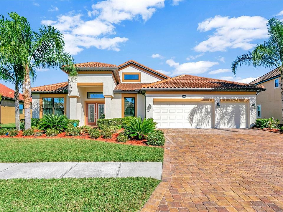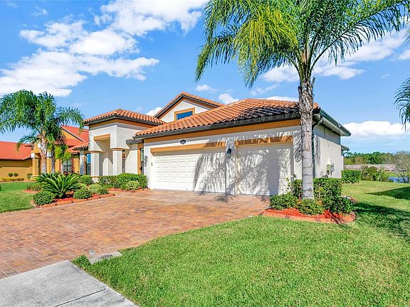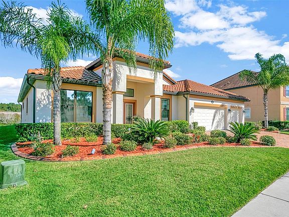 Why wait to build when you can move right into this absolutely stunning waterfront home in the highly desirable TerraLago gated community! From the minute you pull up to this home you will notice details such as concrete edging, sealed brick paver driveway and lovely landscaping inviting you to your double entry front door. As you enter your new home, you will be delighted with an abundance of natural light and vaulted ceilings. Offering you a formal living room which is great as an office space, formal dining room and a light and spacious kitchen. Quartz counters, a center island, 42" cabinets, Stainless Steel appliances include a double door convection oven which the chef in the family will appreciate! Open concept to the family room with beautiful views to the private back yard space as well. Family room is spacious with triple sliders out to the covered and screened lanai and 2 pond views as well! Talk about a PREMIUM lot view! Owners retreat is large and luxurious with private entrance to the lanai, 2 walk in closets as well as a linen closet to the en-suite. Dual sinks and vanity station for getting prepared as well as a garden soaking tub and separate walk in shower. Your secondary rooms are split and private with nice sized rooms and closets. The 4th bedroom has pool bath en-suite access and is quite spacious to serve as a wonderful in-law suite. Relaxing is easy here with your above ground Jacuzzi hot tub overlooking a serene pond for the utmost in peace and privacy. TerraLago is a gated community with pool, fitness, tennis, playground and walking trails. You are minutes to the Lakeland Mall, grocery stores, restaurants and more! This is a must see home!