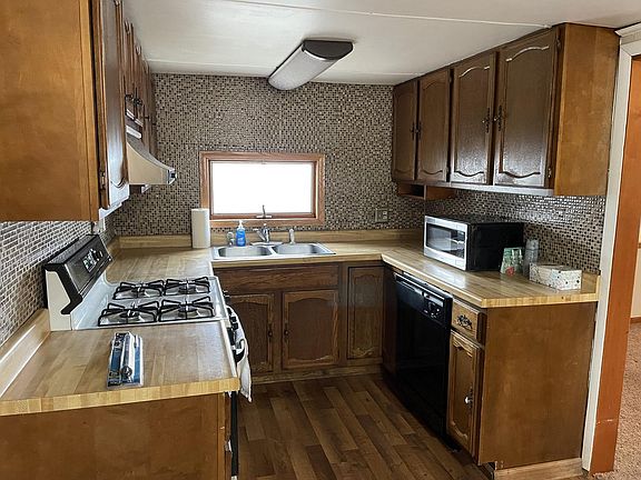 Very neat and clean 2 bedroom home. Updated bathroom, lots of cabinets in the kitchen and a large living room. 3 car heated garage w/new rubber roof and siding and plumbing optional. Newer hot water heater in the open and extremely clean basement. Corner lot with a great deck!