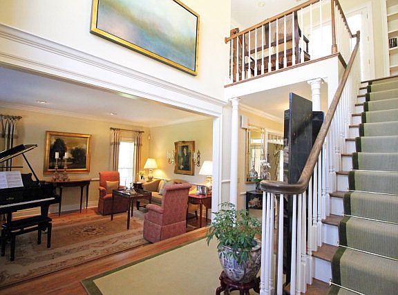 OUTSTANDING MASTERPIECE IN DECOR AND STYLE All brick, beautiful 3 BR, 3.2 BA, master on main, 2 BR up w/own baths, kitchen w/quartz counter tops, breakfast area, dining room, cozy den w/fireplace all in large open area. Separate upstairs bonus rm w/half BA, built-in bookshelves. Delightful patio featuring year round landscaping, large storage areas, 2-car attached garage. Excellent condition!