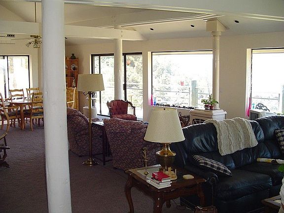 Large, open floor plan home with lots of extras and one of the most beautiful, panoramic views in Pine Mountain club. Upstairs, two large bedrooms w/ walk in closets, and a downstairs master with a full bath. Vaulted ceilings, recessed lighting, dual-pane windows and sliders, water softener, and a large 2 car garage with a large attached bonus room make this property perfect for year around living. An extra large, wrap-around deck with BBQ, and spectacular views is great for entertainment or family enjoyment. The property is at the end of a quiet cul-de-sac, situated on an over-sized 1/2 acre of land, and is very private. There's a large, enclosed room under the house for ample storage. Roof is less than 5 years old. Definitely a must see property. Owner is a California licensed real estate agent. ALSO AVAILABLE FOR LEASE