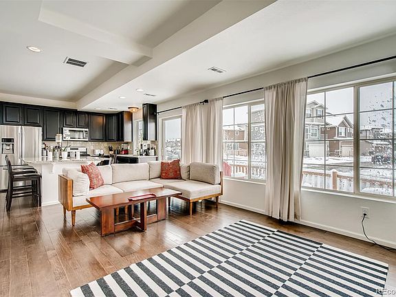 Beautifully updated model home on large corner lot in the Reunion neighborhood! Bright open floor plan with an abundance of natural light and hardwood flooring. The kitchen is perfect for hosting, large kitchen island, granite counters and gas range! Spacious living room and a 1/2 bathroom also on the main level. Master suite features a walk-in closet and private bathroom. Thoughtfully located upper level laundry with a new washer/dryer. This home was built with a plethora of energy saving options and inclusions like water-saving faucets and thoughtful insulation. HOA maintains the front yard. Within walking distance to Harmony HOA Park, Reunion pool, coffee house, trails and all the amenities of Reunion!