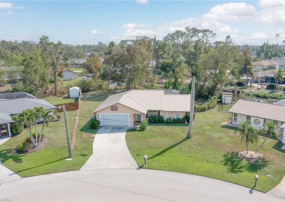 This home offers the perfect blend of comfort and convenience. Boasting 3 bedrooms and 2 bathrooms, this home features 1,361 square feet of well-designed living space. The newer metal roof ensures durability and peace of mind, while the spacious layout invites both relaxation and entertaining. The open floor plan creates a natural flow between the living, dining, and kitchen areas, making it perfect for modern living. Step outside to enjoy your private outdoor oasis. The EXPANSIVE YARD spans 0.39 acres, providing ample space for recreation and gardening. A BELOW GROUND, CONCRETE POOL becomes the centerpiece for sunny Florida afternoons, offering a refreshing retreat. The property’s high elevation ensures it remains high and dry, with no flooding from any storms to worry about. Practicality meets convenience with central water service, and the location truly shines. Situated close to Florida Gulf Coast University (FGCU), dining, shopping, RSW Airport, and Interstate 75, this home keeps you connected to everything Southwest Florida has to offer. Don’t miss this incredible opportunity to own a piece of paradise.
