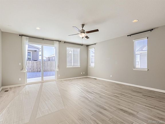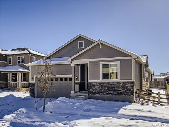 Picturesque single story home located near E470, Rocky Mountain, Second Creek Open Space, retail, restaurants, and more! Step inside and be impressed by the open floor plan and natural light pouring in. The kitchen is pristine and open to the main living areas. The kitchen features quartz countertops, tons of cabinet space, and stainless steel appliances. The living room offers large doors leading out to the sunny patio and fenced in backyard. There are 3 main level bedrooms, including the primary suite with a spacious en-suite bath and walk-in closet. The basement is finished offering additional living space for the new owners, including a family room, 2 more bedrooms, and a full bath. Welcome home! Click the Virtual Tour link to view the 3D walkthrough.