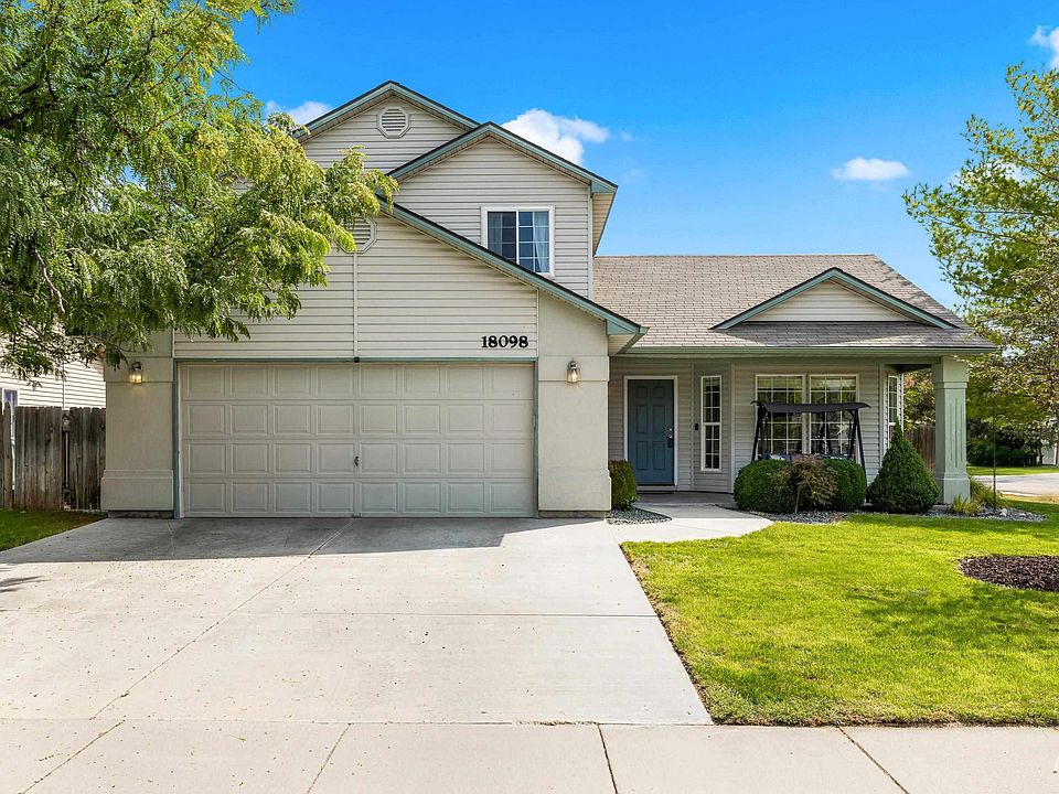 Welcome to this inviting two-story home on Calico Avenue in Nampa! Set in a central location just minutes from shopping, freeway access, neighborhood park and schools. The open floor plan is bright and welcoming with beautiful windows, LVP flooring, vaulted ceilings and natural light. The kitchen features white cabinetry with black hardware, stainless steel appliances and a pantry for storage. Upstairs, you’ll find three bedrooms and two bathrooms, including a primary suite with vaulted ceilings, walk-in closet and private bath. The attached garage includes a newly installed camera system (not tied to a service) that connects to your phone, sending real-time alerts when the garage door opens or closes and providing live video access. With its generous corner lot, this home invites gatherings indoors and out, combining everyday ease with plenty of space to enjoy.