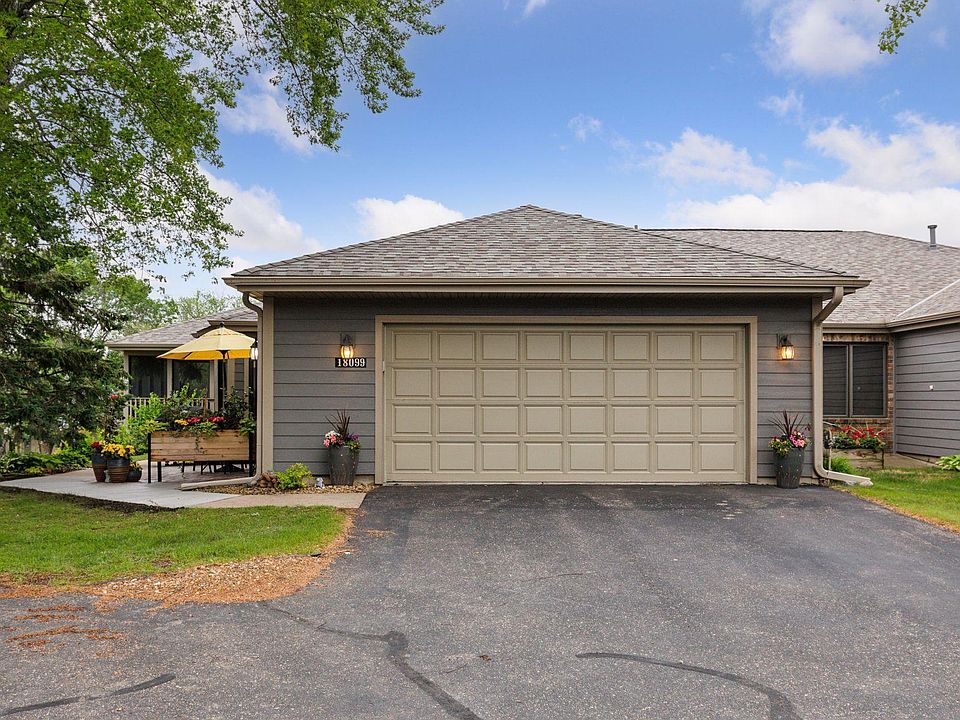 Experience the charm of this desirable Brackett's walkout end unit townhome. The main level features vaulted ceilings, hardwood floors, music area, a beautifully remodeled kitchen in 2020, which features granite countertops, enameled cabinets, and a ceramic tile backsplash. The owner's suite is a true retreat, featuring a 2-sided gas fireplace, vaulted ceiling, and an updated spa-like bath with a jetted tub and a separate shower. You'll love the views of the 10th green and the lush fairways of Brackett's Crossing Country Club from your deck, kitchen window, or expansive three-season screened porch. The spacious lower-level family room also has an additional gas fireplace and opens to a paver patio and lovely green space. This level includes a family room with wet bar, private office, large bedroom that connects to a large walk-in closet and another spa-like bathroom featuring a separate whirlpool tub and shower and ample storage. Additionally, the oversized two-car garage offers loads of space, including room for a golf cart! With over 3,200 finished square feet, this home is conveniently located near shopping and travel options. Enjoy new windows and doors, James Hardy siding, and a new roof in 2024!