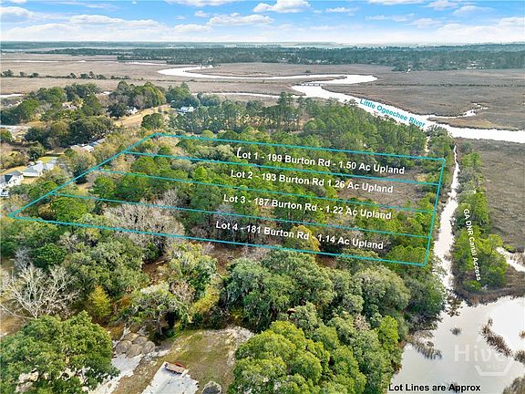 Marsh Front Lots on the Little Ogeechee River and Tidal-Fed Pond with Gorgeous Views from every Lot! 5.12 Acres Upland and Heirloom Type Land. Live Oaks over 100 Years Old create an amazing Canopy and scream Southern Beauty! Land is already divided into Four Lots ranging from 1.5 ac to 1.14 ac and Lots 1 thru 3 can be further subdivided with County Approval. Every Lot backs up to the beautiful flowing Marshes of the 42 mile long Little Ogeechee River, a Tributary of the Ogeechee River in Savannah, GA. The brackish Tidal Marsh is a tranquil nesting place to beautiful, migratory Water Birds and Wildlife with Bald Eagles, Red-Tailed Hawks, Blue Herons, Ducks and Owls. Call for your Private Tour. Front Portion X-500 Flood Plain with AE8 on the Marsh Side. DNR Marsh Flags set and Phase I & Soil Tests complete. County Taxes Only. Water Lines at Street through Consolidated Utilities. Private Sewer req'd. Chatham County PINs included are: 11005B 01034, 11005B 01097 thru 01099.