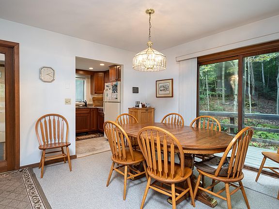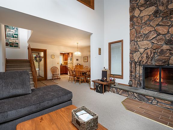 WARM & INVITING, nicely updated/decorated 3 bedroom, 3 bath, with loft, contemporary home on 1.8 acres +/-. The living room features a cathedral ceiling with a towering stone wood burning fireplace, large flat screen TV, and an abundance of natural light shining through the numerous windows in the space. Off the living room, through sliding glass doors, you will find the massive back deck, ready for your outdoor enjoyment. Also on the main living level are 2 bedrooms, 2 baths, and a toasty sauna. Upstairs is a delightful loft, which can be used in a variety of ways to accommodate your needs. Downstairs is the finished basement with a cozy living room for gathering, complete with a wood burning stove and flat screen TV. The basement also provides a fun game room area with a combination pool table and ping pong table. And finally, the bunk room, bath, and second sauna wrap up the finished basement space. This home is located on a Cul-de-Sac road, close to the popular Kent Pond area, and is just minutes to skiing, mountain biking, hiking, golfing, and a wide range of other recreational activities.