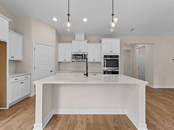 True Ranch Plan w/Vaulted Kit/FamRm/DiningRm! Huge RockingChair Front Prch! 7.5' ''Rustic Rye Chestnut'' WidePlank HwdStyleFlrng Thru MainLvng w/10Yr Pet & Waterproof Protection! 'First Star' DesgnrPaintColor ThruOut! Kit: White Painted Cbnts w/Crwn & MatteBlack Hardware, 'Pitaya White' Granite, 3x6 White Subway Tile Bcksplsh, RcssdLghtng, Gourmet Kitchen Layout Incl GE SS Appliances- Cooktop, Double Wall Oven & Vented Micro! Island w/Breakfast Bar, DsgnrPendantLghts & White Farmhouse Barclay Sink w/MatteBlack PullOut 'Foodie' CoilFaucet! Corner WalkIn Pantry! Mstr: PlushCarpet & CeilngFn! MstrBth: White Paintd Dual Vanity w/'Blanco Matrix' Quartz & RectangleSinks! ComfortHeight Elongated Toilet, 'Sphynx Cream' 12x24 Tile Floor, WalkIn Shower, Sep Garden Tub & WalkIn Closet! FamRm: Gas Log Fireplace w/Slate Srrnd & CstmMantle! CeilngFan & French Door Access to Covered Porch! Mud Rm w/DropZone Bench!