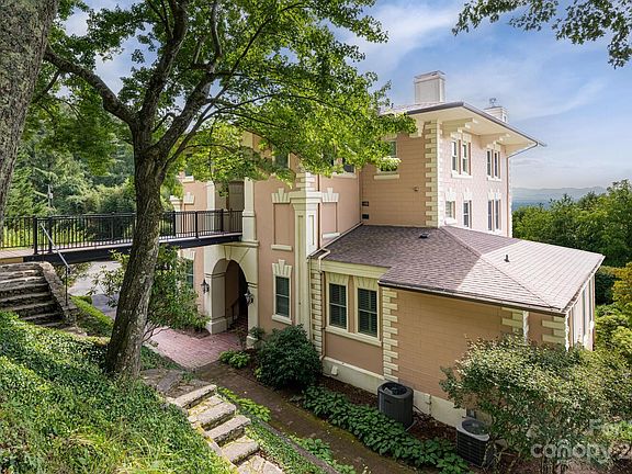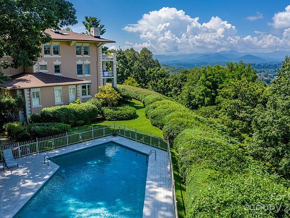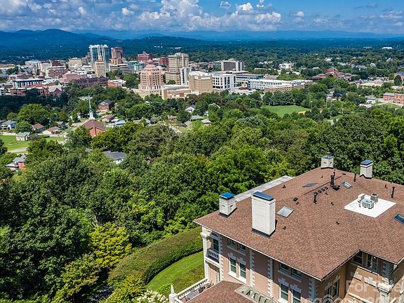 Gently perched up on Beaucatcher Mountain above downtown & offering sweeping mountain & city views this luxury condo exemplifies why they call Asheville the "Paris of the South." The historic & beloved Skyclub building is the romantic setting that beautifully blends the old with the new in an updated clean interior that reflects the building's deco past. Enjoy the ever changing light and sky from your kitchen, sunroom and covered patio with sunset views. Or retreat to a cozy fire in either the living room or primary bedroom. The updated home has quality finishes & appliances throughout including a Bosch induction range & on demand water heater. The secluded, private and gated 4 unit building has level garden space to enjoy the southern sun including a heated swimming pool. The property is a ten minute walk to downtown. This unit comes with a two car garage & 170 sq ft storage room in the basement.