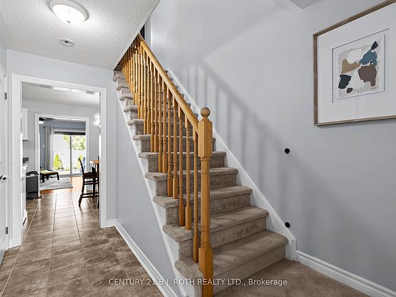 Welcome to 181 Banting Cres! This 3 bedroom, 2 bathroom home offers a functional layout and thoughtful updates throughout. The main floor features an open-concept design with a spacious living room, an updated powder room with a stylish feature wall, and plenty of natural light. Enjoy inside entry to the oversized single garage, complete with epoxy flooring, loft storage, and a breezeway to the backyard; ideal for vehicles, hobbies, or extra storage. Upstairs, you'll find three generously sized bedrooms, a newly renovated 4 piece bath (2025), and a convenient oversized laundry closet. The finished basement provides additional living space with a family room, abundant storage, and a rough in for a future bathroom. Outside, the long driveway (no sidewalk) easily accommodates two large vehicles. Located in a family friendly neighbourhood, you're within walking distance to parks and schools, with shopping just minutes away. Only 20 minutes from Barrie, this home is move in ready and waiting for its next owners!