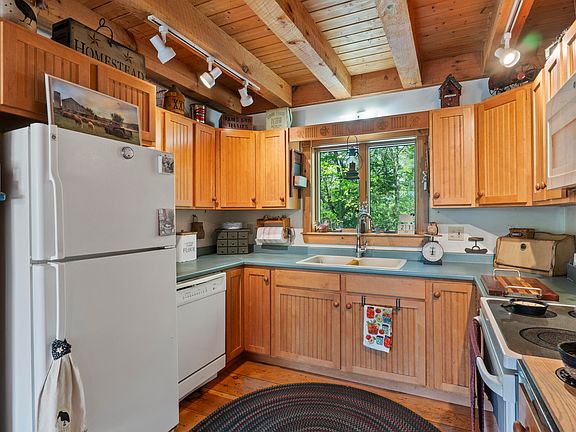 Welcome to your countryside retreat! This charming, 2001 built home, has 2 bedrooms, 1.5 baths with an attached 2 car heated garage, sits on a sprawling 41.8 acres, offering the perfect blend of comfort and nature. Step inside to find post and beam on the first floor and a cozy living space equipped with a woodstove, ideal for those chilly nights. Upstairs has 2 bedrooms, 2 large walk in closets and a jet tub to soak after a long hard day. Step outside to a huge wrap around deck, perfect for entertaining or enjoying the serene landscape and wildlife. Explore the wooded trails that wind through the land leading to a cabin tucked away in the back of the woods. Here you can relax and enjoy views of the beaver pond, making it the perfect spot for reflection and relaxation. This property is a nature lover's dream, providing the perfect blend of comfort and seclusion.