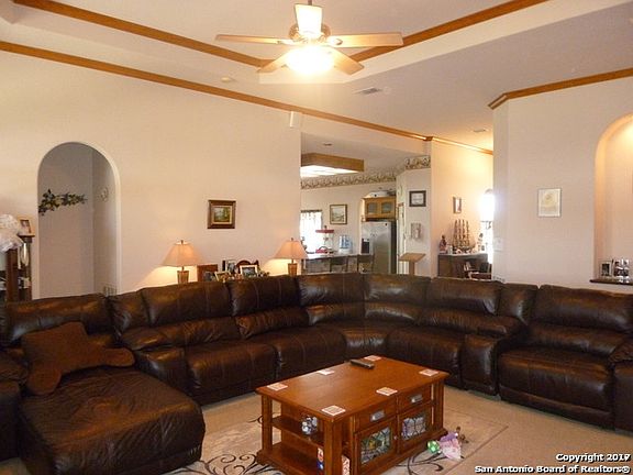 MARION ISD, bring your horses! Engineered slab,factory tinted windows, 2-50 gal wtr heaters, 3 ton and 5 ton a/c units outside, Central Vac, 13 ft ceilings, 1.78 AC w/fully fenced back yard. Insulated 3 car garage w/extra pad parking, huge covered porch, Gazebo, storage buildings, 20X30 above ground garden. Huge gameroom. All bedrooms are large! Close to I10, I35 and Randolph AFB. Christmas light permanent plug ins outside. RV50 AMP, Zone Irrigation system. Surround sound house & Patio
