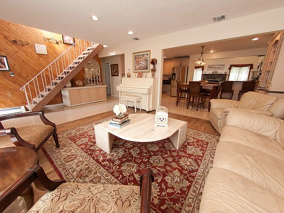 Magnificent Sprawling Ranch W/2 Extensions. Large Black Top Driveway W/Cobble Stone Border, Updated Flooring. Open Floor Plan & Recessed Lighting, Updated Kit.White Cabinets, Granite Countertops, Ss Appl. W/Custom Backsplash.Lots Of Cabinet & Counter Space W/Breakfast Bar. Beautiful Den W/Vaulted Ceiling's. French Doors & Stone Fp Lrg. Bdrms, Updated Upstairs Bath & Shower. Master Bdrm W/large Closet. Central Ac. Possible 2nd Kit. Or Professional Use, Ose.