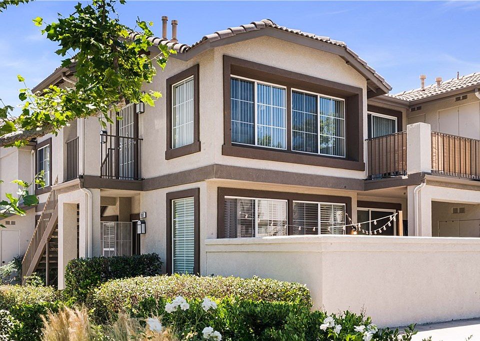 Welcome home to this inviting 2 bedroom, 2 bath Foothill Ranch condo, in the coveted community of Salerno. Located towards the quiet back of the complex, this incredible lower end unit, is one of only a few with a private large corner patio! The patio is an outdoor oasis with stone pavers, bistro lights, some artificial grass for your fur babies and custom wood wall design! If you must go indoors, enjoy 1060 sq. ft. of a home that has been meticulously maintained; including quartz countertops in the kitchen, stainless steel appliances, recessed lighting, hardwood flooring throughout kitchen and common areas, ceiling fans in every room, and a cool color paint palette. There are 2 oversized bedrooms and the master is complete with walk-in closet and en suite. The laundry closet, tucked away nicely in the kitchen, is big enough for full-sized, side-by-side W/D and has cupboards for additional storage. The Salerno and Foothill Ranch Association HOAs have it all: pools, spa, clubhouse, sports courts, kid's playground, BBQ areas, and access to nearby parks. There is 1 detached garage with overhead storage and plenty of unassigned parking conveniently located near your new condo! Salerno is located in the heart of Foothill Ranch, with access to fantastic schools (all 8+ rating), Whiting Ranch Trails, parks, shopping, restaurants and freeways (241 Toll Road). It's time to make your move and come make this condo everything you've been dreaming of!