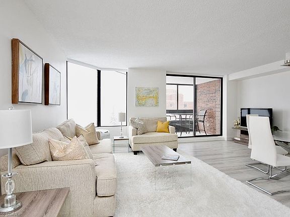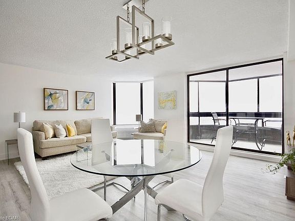 BEAUTIFULLY RENOVATED AND REDONE 2 BEDROOM CONDO IN DESIRABLE BARRIE LOCATION OFFERS AMAZING UNOBSTRUCTED VIEWS OF KEMPENFELT BAY FROM EVERY ROOM IN THE UNIT, AS WELL AS A SCREEN AND GLASS ENCLOSED BALCONY! NEW OPEN CONCEPT MAIN LIVING SPACE, AND REMODELLED KITCHEN, ALLOWS THE SPACE TO BE FLOODED WITH LIGHT FROM LARGE WINDOWS. OFFERS VIEWS OF THE WATER FROM NEW BREAKFAST ISLAND. NEW APPLIANCES, QUARTZ COUNTERS, LIGHTING, FLOORING, TRIM THROUGHOUT. SEPARATE IN SUITE LAUNDRY / STORAGE. MASTER HAS LARGE WALK THROUGH CLOSET AND ENSUITE. BAYCLUB AMENITIES INCL. INDOOR POOL, SAUNA, HOT TUB, PARTY ROOM, WOOD WORKING SHOP, LIBRARY, TENNIS & SQUASH COURTS, RENTABLE GUEST SUITE, AND BICYCLE STORAGE ROOM. STEPS TO DOWNTOWN SHOPS AND RESTAURANTS, WATERFRONT, NORTH SHORE TRAIL, AND THE FARMER'S MARKET ON WEEKENDS. SELECT FURNITURE AND ARTWORK AVAILABLE FOR PURCHASE, PLEASE INQUIRE W/ LISTING AGENT.